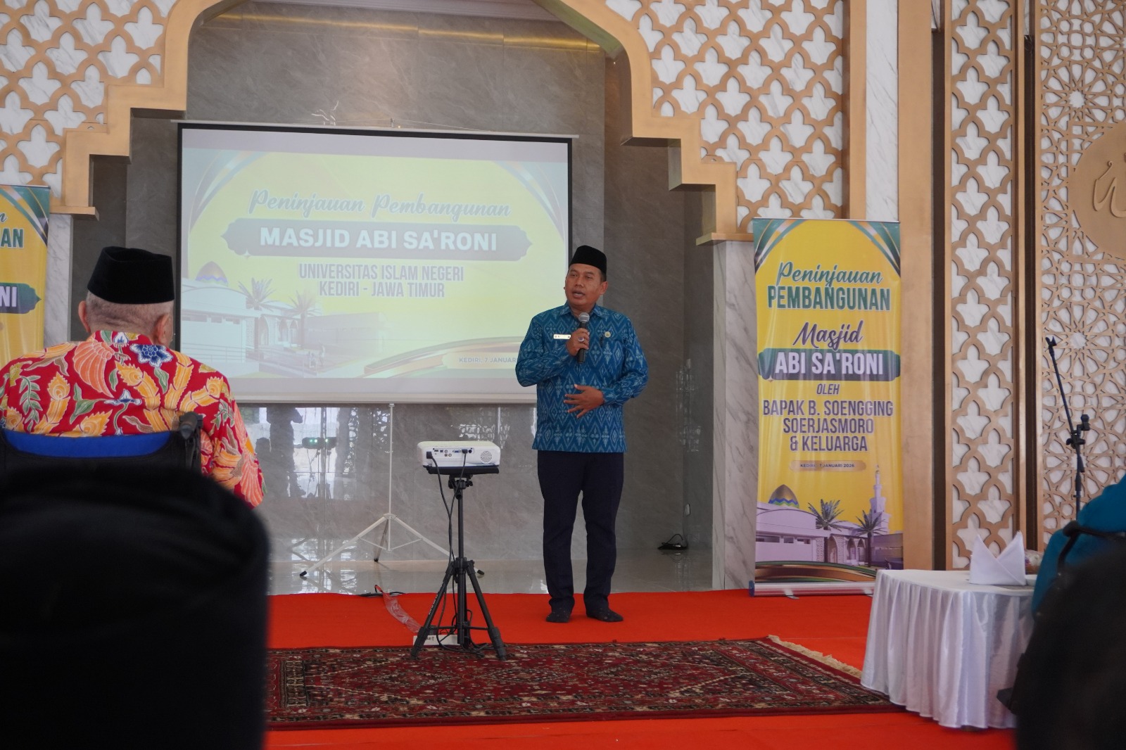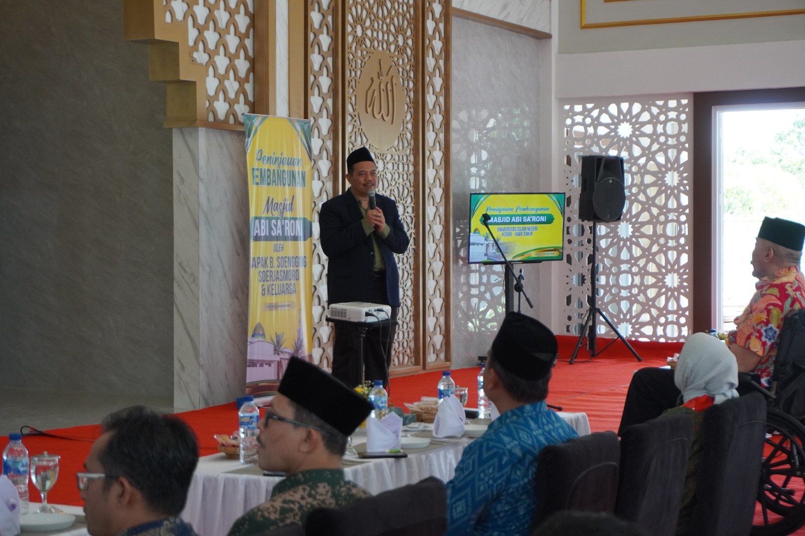 Rektor UIN Syekh Wasil Kediri, Wahidul Anam, dalam sambutannya menyampaikan terima kasih kepada Bapak Soengging beserta keluarga yang telah berkenan hadir secara langsung guna melakukan peninjauan pembangunan Masjid Abi Sya’roni. Setelah bersama meninjau bangunan masjid, Wahidul Anam, meyakini bahwa Masjid Abi Sya’roni dapat memberikan manfaat yang luas bagi sivitas akademika serta masyarakat sekitar.