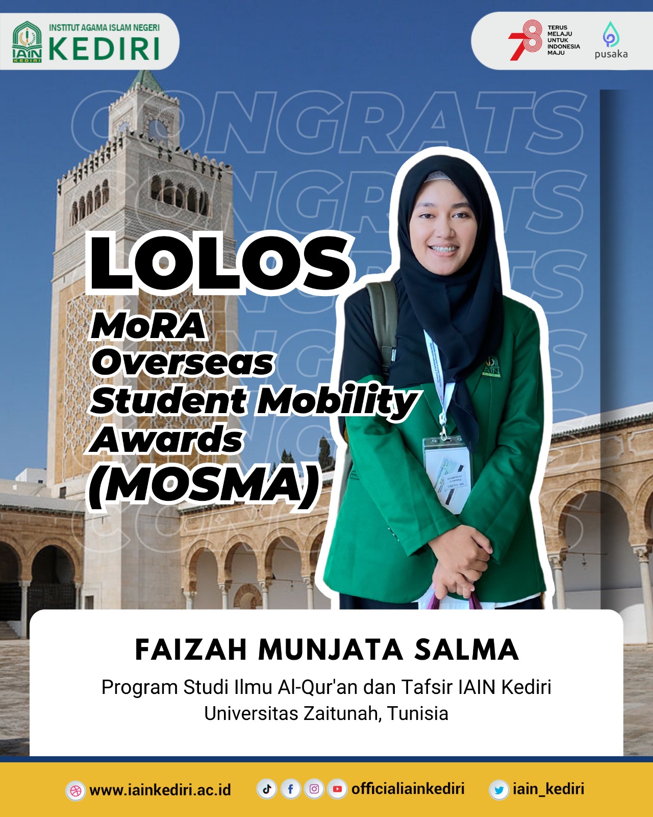 Read More Berita MAHASISWI PRODI ILMU AL-QUR�AN DAN TAFSIR IAIN KEDIRI LOLOS BEASISWA MOSMA KE TUNISIA